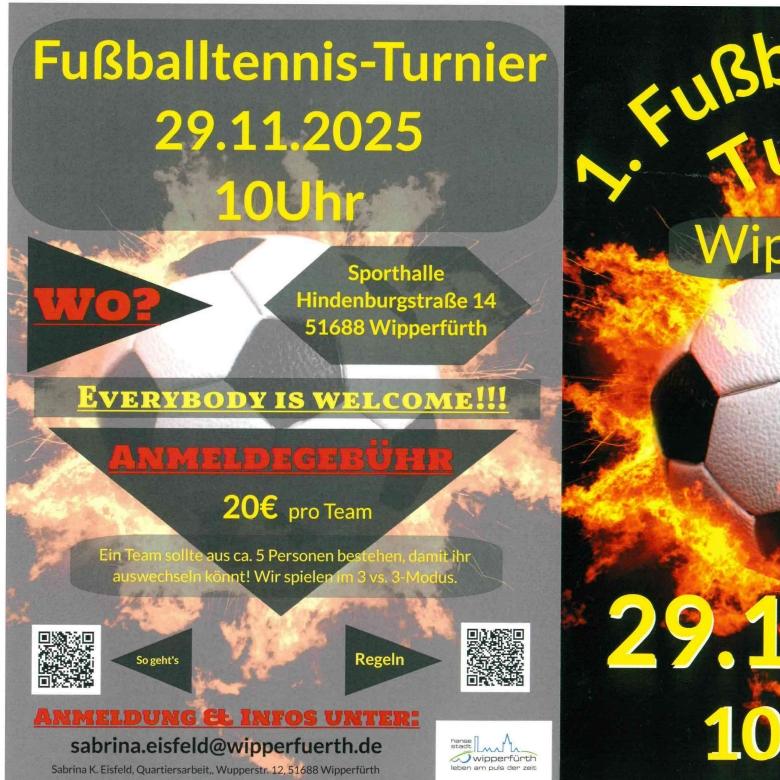 Dann schnapp dir dein Team und zeig, was du drauf hast – beim **Fußballtennisturnier in Wipperfürth**!