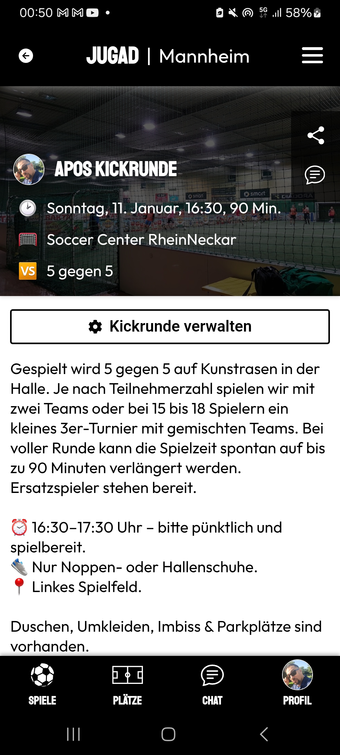 Wir laden euch herzlich zur ersten offiziellen Mannheimer Kickrunde ein, organisiert über die Jugad-App ⚽